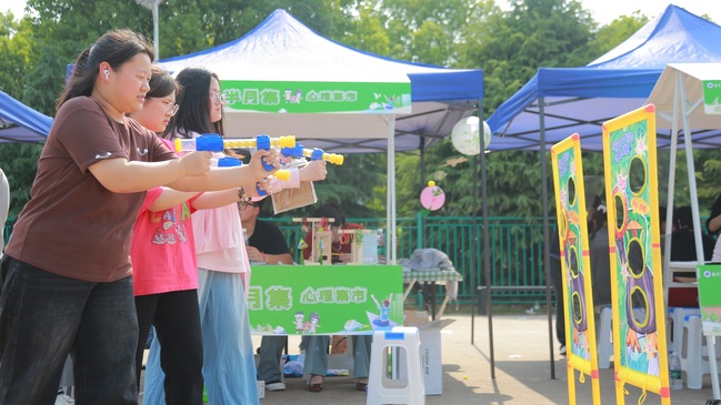 本次活動以萌趣“打鴨”為主題,使用安全環(huán)保的空氣軟彈槍,在模擬靶場中釋放壓力,感受射擊的暢快與趣味。通過專注瞄準(zhǔn)、擊發(fā)的過程,學(xué)生轉(zhuǎn)移日常壓力,在輕松氛圍中調(diào)節(jié)情緒,收獲身心放松,“鴨”力清零!