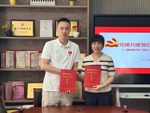 為構(gòu)建“資源共享、優(yōu)勢(shì)互補(bǔ)、協(xié)同發(fā)展”的基層黨建工作新格局,2025年5月28日上午,基礎(chǔ)教學(xué)部(國(guó)合辦)黨總支與體育部直屬黨支部在明德樓414會(huì)議室舉行黨建共建結(jié)對(duì)簽約儀式。雙方以“黨建共建強(qiáng)紐帶'以體育人'筑同心"為主題,簽署《基層黨組織結(jié)對(duì)共建協(xié)議書(shū)》,正式開(kāi)啟基層黨組織協(xié)同育人新篇章?;A(chǔ)教學(xué)部(國(guó)合辦)黨總支副書(shū)記王黛碧、體育部直屬黨支部書(shū)記唐曹愷夫、兩個(gè)部門(mén)的黨員教師代表及留學(xué)生代表參加簽約儀式。