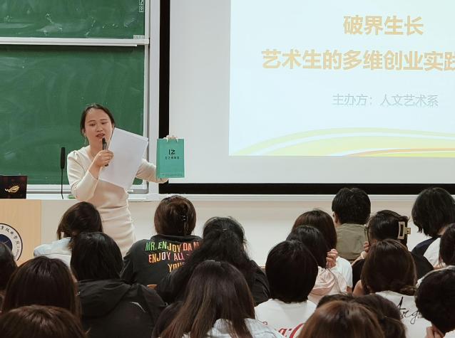 5月29日,人文藝術(shù)系邀請(qǐng)江寧區(qū)左之典銀飾品店法定代表人、南京長(zhǎng)熙珠寶有限公司總經(jīng)理、南京天香九闕香業(yè)科技有限公司股東毛雅星,為大一學(xué)生帶來(lái)主題為《破界生長(zhǎng):藝術(shù)生的多維創(chuàng)業(yè)實(shí)踐路徑》的CAREER講壇。