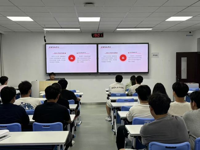 活動伊始,團支書為班級同學講述了本次活動的內(nèi)容。緊接著播放相關視頻,帶領同學們回顧了中華民族團結(jié)奮斗的歷史。觀影結(jié)束后,團支書結(jié)合圖文資料,深入講解了鑄牢中華民族共同體意識的內(nèi)涵和意義。最后互動交流環(huán)節(jié),同學們圍繞“如何在日常生活中促進民族團結(jié)”展開了熱烈的討論,并上臺分享自己的感受。