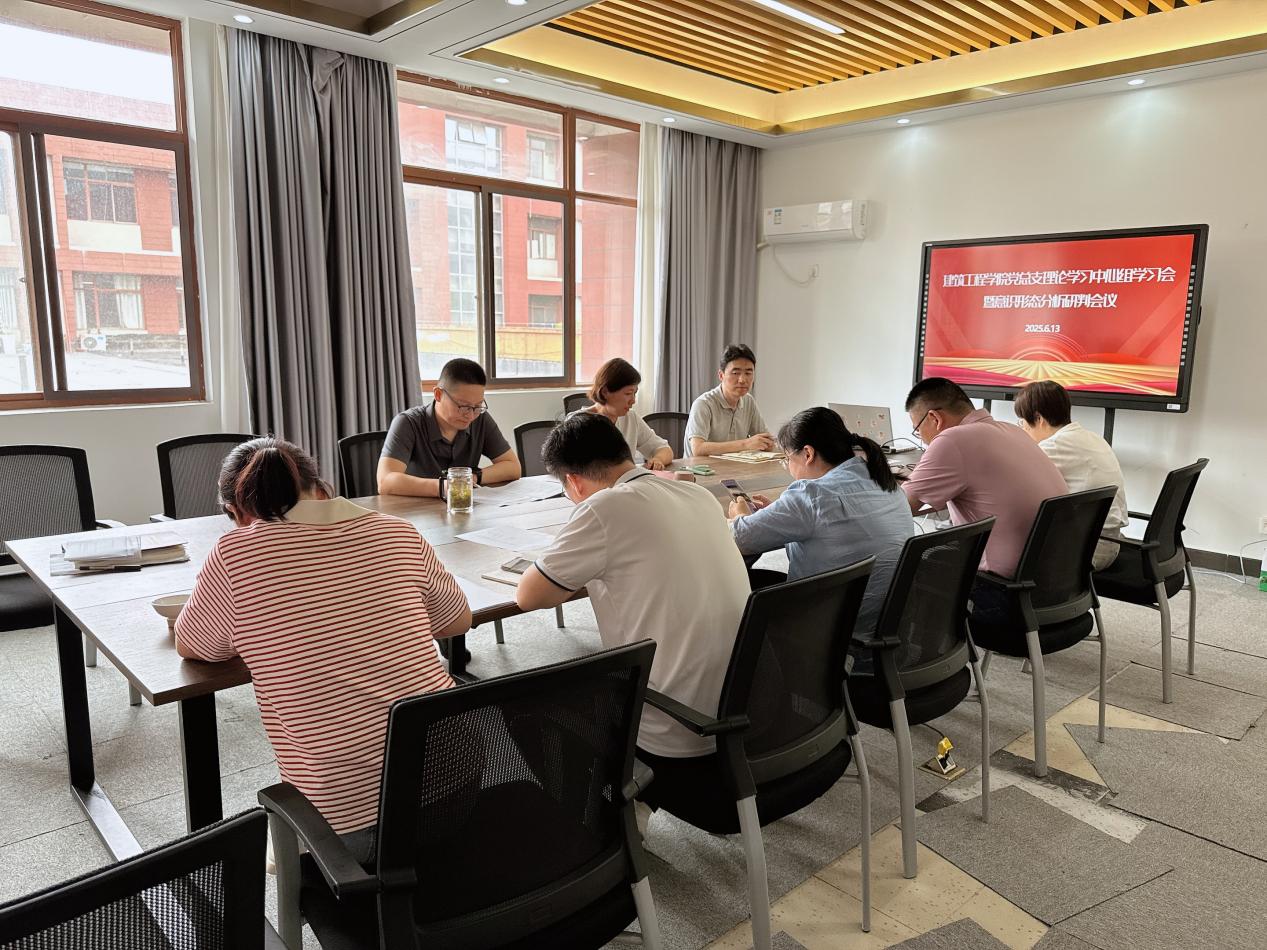6月13日上午,建筑工程學院黨總支在廣宇樓320會議室召開理論學習中心組學習會暨意識形態(tài)分析研判會議,學院領導班子成員、黨總支委員、支部書記、支部委員參會,會議由張麗君書記主持。