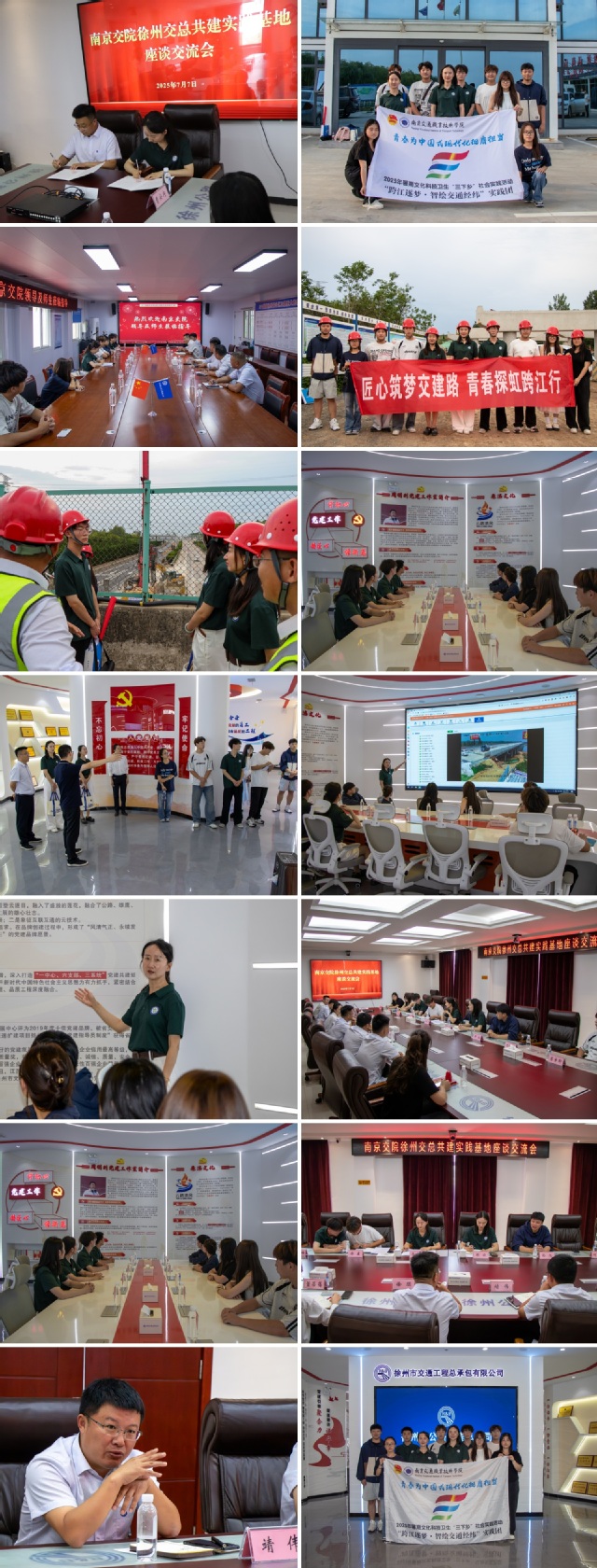 7月7日,南京交通職業(yè)技術(shù)學(xué)院路橋與港航工程學(xué)院“跨江逐夢(mèng) 智繪交通經(jīng)緯”暑期社會(huì)實(shí)踐團(tuán)赴徐州市交通工程總公司開(kāi)展暑期社會(huì)實(shí)踐共建活動(dòng)。雙方通過(guò)黨建交流、項(xiàng)目考察、簽約座談等形式,就共建實(shí)踐基地達(dá)成多項(xiàng)合作共識(shí)。
