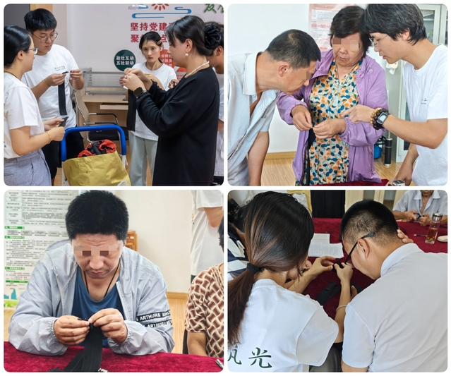 輔助性就業(yè)體驗(yàn)環(huán)節(jié),則讓實(shí)踐團(tuán)成員深刻體會(huì)到殘障群體的堅(jiān)韌。在學(xué)習(xí)安裝拉鏈扣頭的過程中,同學(xué)們歷經(jīng)多次練習(xí)才掌握技巧,而當(dāng)他們轉(zhuǎn)身協(xié)助殘障朋友時(shí),更被一幕幕場(chǎng)景觸動(dòng):智力殘疾的小吳看一遍就學(xué)會(huì)操作,露出靦腆的笑容;患有腦癱的老李雖言語不清,卻緊盯著示范動(dòng)作反復(fù)揣摩;手部肌肉嚴(yán)重萎縮的張叔一次次讓扣頭從顫抖的指尖滑落,卻始終彎腰撿拾,額角滲出的汗珠折射出倔強(qiáng)的光芒。
