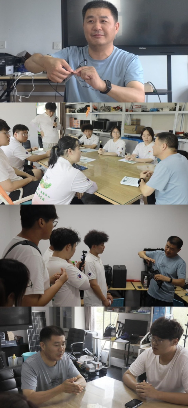 交流環(huán)節(jié)中,趙中營老師與實踐團員展開熱烈討論。以蘇南丘陵地區(qū)農(nóng)業(yè)生產(chǎn)為樣本,趙老師分享了植保無人機服務(wù)地方農(nóng)業(yè)升級的實戰(zhàn)經(jīng)驗:針對作物品種調(diào)整噴幅壓力、破解續(xù)航短板等技術(shù)難題的鮮活案例,為隊員們提供了可復(fù)制的實踐范本。