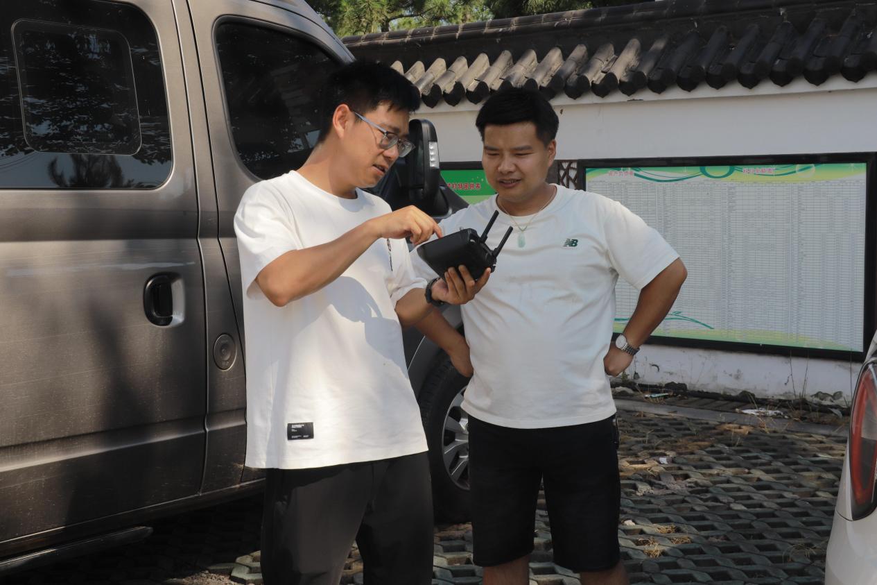 實踐團(tuán)結(jié)合前期調(diào)研掌握的村莊地形地貌與產(chǎn)業(yè)分布特點(diǎn),制定了科學(xué)詳盡的飛行方案。團(tuán)隊成員頂烈日、戰(zhàn)高溫,在測繪前輩的指導(dǎo)下操作大疆御3E無人機(jī)升空作業(yè)。高效采集覆蓋村莊建成區(qū)、主要苗木種植區(qū)、道路水系及公共空間的高清正射影像與傾斜影像數(shù)據(jù)。通過嚴(yán)謹(jǐn)?shù)暮骄€規(guī)劃與規(guī)范的飛行操作,所獲影像資料的清晰度、完整性及高精度得到充分保障,為構(gòu)建村莊數(shù)字底圖奠定堅實基礎(chǔ)。
