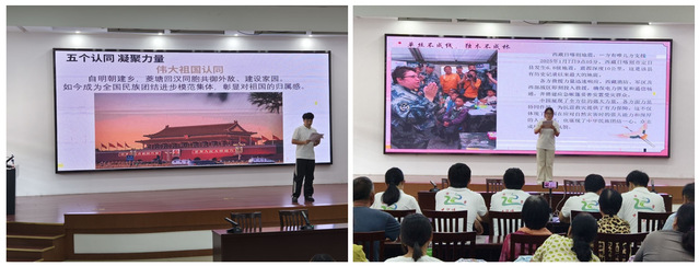 實(shí)踐團(tuán)成員周濤、陳佳慧分別進(jìn)行了題為《同心共筑中國夢,石榴花開菱塘情》《絲路連心,民族團(tuán)結(jié)》的宣講,菱塘回族鄉(xiāng)清真村多名鄉(xiāng)親參加了宣講活動(dòng)。宣講后,同學(xué)們還為鄉(xiāng)親們演唱民族歌曲《茉莉花》、朗誦現(xiàn)代詩《沁園春·民族團(tuán)結(jié)》,外國留學(xué)生也積極上臺(tái),用母語向鄉(xiāng)親們問好?,F(xiàn)場氣氛熱烈融洽,充滿歡聲笑語。