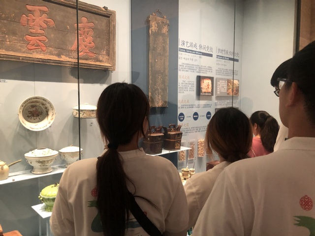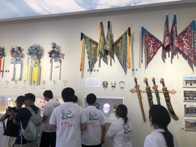 在7號(hào)廳:大運(yùn)河非物質(zhì)文化遺產(chǎn)。實(shí)踐團(tuán)成員們看到了各族人民戲曲文化、習(xí)俗文化和飲食文化的交融。大運(yùn)河讓各族人民的文化流動(dòng)并融合,促進(jìn)了中華文明的傳承,凝聚了中華民族精神。