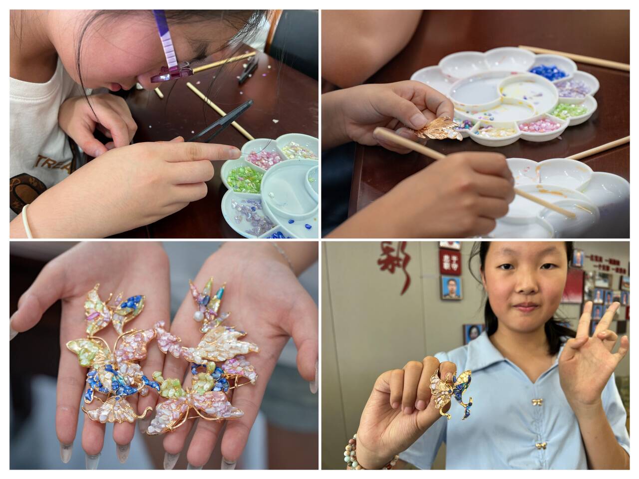 實(shí)踐環(huán)節(jié)設(shè)置了漆扇制作、螺鈿胸針設(shè)計(jì)等互動(dòng)項(xiàng)目。孩子們?cè)谥驹刚咧笇?dǎo)下,體驗(yàn)了漆液調(diào)配、圖案暈染等工藝步驟??粗约河H手制作的漆藝作品在燈光下閃閃發(fā)光,小朋友們興奮不已。家長(zhǎng)們紛紛表示:“這樣的活動(dòng)既有趣味性又有教育意義,孩子玩得開(kāi)心的同時(shí)還學(xué)到了傳統(tǒng)文化知識(shí)?!贝舜位顒?dòng)不僅讓孩子們?cè)谟H身體驗(yàn)中走近非遺、熱愛(ài)非遺,更實(shí)現(xiàn)了“非遺從揚(yáng)州走入社區(qū)”的教育閉環(huán),真正把優(yōu)秀傳統(tǒng)文化帶給基層兒童,助力非遺文化“進(jìn)課堂、潤(rùn)童心、育新人”。