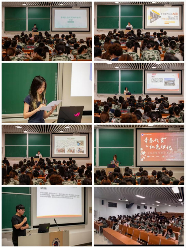 會(huì)上,七位學(xué)生代表結(jié)合實(shí)踐情況依次匯報(bào)分享,圍繞習(xí)近平新時(shí)代中國(guó)特色社會(huì)主義思想宣傳、愛(ài)國(guó)主義教育、中華文化傳承、基層服務(wù)等主題,詳細(xì)介紹項(xiàng)目實(shí)施過(guò)程、特色亮點(diǎn)與豐碩成果,生動(dòng)展現(xiàn)了同學(xué)們發(fā)揮專業(yè)所長(zhǎng)、深入社會(huì)一線、積極探索多樣化實(shí)踐的青春風(fēng)采,表達(dá)了在實(shí)踐中錘煉本領(lǐng)、認(rèn)知國(guó)情、堅(jiān)定信念的共同心聲。