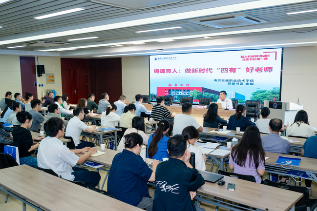 儀式結(jié)束后,張毅書記給新教師講授第一課。圍繞“鑄魂育人,做新時代‘四有’好教師”,闡述了當(dāng)前職業(yè)教育形勢和交通運輸行業(yè)發(fā)展,重點分析了堅定理想信念、涵養(yǎng)道德情操、錘煉扎實學(xué)識、永葆仁愛之心等“四有”好教師內(nèi)涵。用鮮活的實例解讀 “四有好教師”,為新教師成長指明了方向。