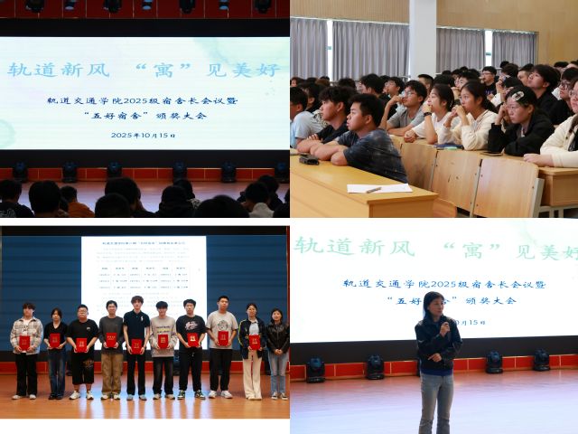 為加強新生宿舍管理,營造安全、整潔、文明的住宿環(huán)境,2025年10月15日下午,軌道交通學院在大學生活動中心226教室舉辦了2025級宿舍長會議暨“五好宿舍”頒獎大會。學院2025級全體班長及宿舍長參加。