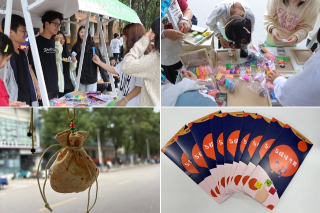 集市一是“芳香精心,煩惱包起來”DIY手工自制中藥香包活動。集市二是音樂調(diào)心,音振脈絡(luò),韻啟心扉——音療活動為學(xué)子按下“心靈復(fù)位鍵”。集市三是“框”住美好,“泥”我共筑“心”能量DIY黏土相框活動。