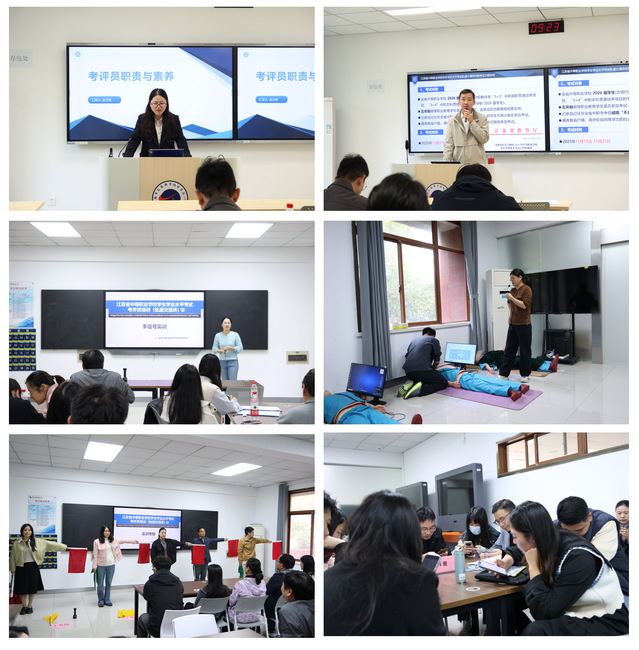 實(shí)操培訓(xùn)階段,教研室金立艷老師系統(tǒng)講解“考評員職責(zé)與素養(yǎng)”,強(qiáng)調(diào)公平公正與嚴(yán)謹(jǐn)規(guī)范,結(jié)合案例剖析考評標(biāo)準(zhǔn);王亮軍老師圍繞“考評員工作要點(diǎn)”,從考試流程、評分要點(diǎn)到應(yīng)急處置多維度展開,深化理解。隨后,陶雨濛、石玉香老師組織手信號、心肺復(fù)蘇項(xiàng)目實(shí)訓(xùn)練習(xí),強(qiáng)化學(xué)員對評分標(biāo)準(zhǔn)與關(guān)鍵觀測點(diǎn)的把握能力。最后通過模擬考評,高度還原考評現(xiàn)場,有效提升參訓(xùn)教師在考評過程中的規(guī)范性與應(yīng)變能力。