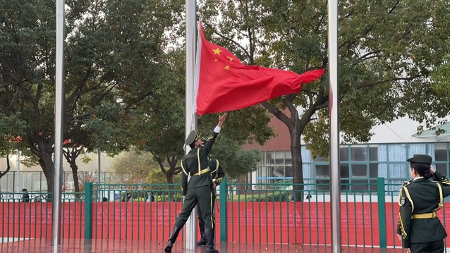 初冬暖陽(yáng)傾灑于操場(chǎng),學(xué)生們陸續(xù)抵達(dá)指定地點(diǎn)并列隊(duì)完畢。七時(shí)整,升旗儀式正式啟幕。在學(xué)生們的注目下,國(guó)旗儀仗隊(duì)隊(duì)員昂首挺胸,邁著整齊、有力的正步,護(hù)送五星紅旗走向旗桿。伴隨著《義勇軍進(jìn)行曲》激昂雄壯的旋律,學(xué)生們肅立凝望,五星紅旗在熠熠晨光中冉冉升起、迎風(fēng)飄揚(yáng)。歌聲結(jié)束,本次愛國(guó)主題升旗儀式圓滿完成,學(xué)生們懷著激動(dòng)的心情有序離場(chǎng)。