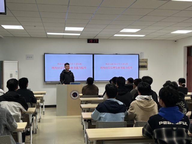 為進(jìn)一步增強(qiáng)學(xué)生干部的服務(wù)意識(shí),加強(qiáng)學(xué)生干部隊(duì)伍的整體建設(shè),2025年11月10日晚,軌道交通學(xué)院于明志樓304教室舉辦了以“班級(jí)日常管理及業(yè)務(wù)能力提升”為主題的學(xué)生干部培訓(xùn)會(huì)。本次培訓(xùn)由輔導(dǎo)員米成龍老師擔(dān)任主講,2025級(jí)各班班長(zhǎng)及團(tuán)支書參加。