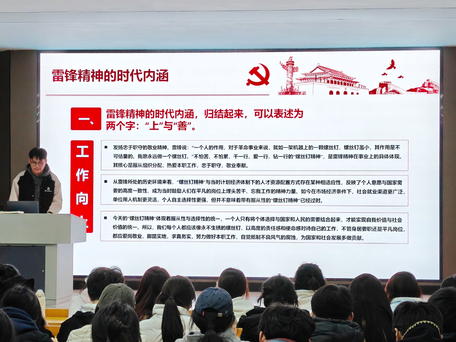 王梓同學真摯的話語如同一束光,照亮了同學們前行的道路。這場主旨報告,讓雷鋒精神在每一位同學心中扎根生長。相信在未來的日子里,運輸管理學院的學子們定會以實際行動響應(yīng)號召,將雷鋒精神化作日常的點滴善舉,在個人成長的道路上與國家發(fā)展同頻共振,讓雷鋒精神在新時代綻放出更加溫暖而耀眼的光芒。