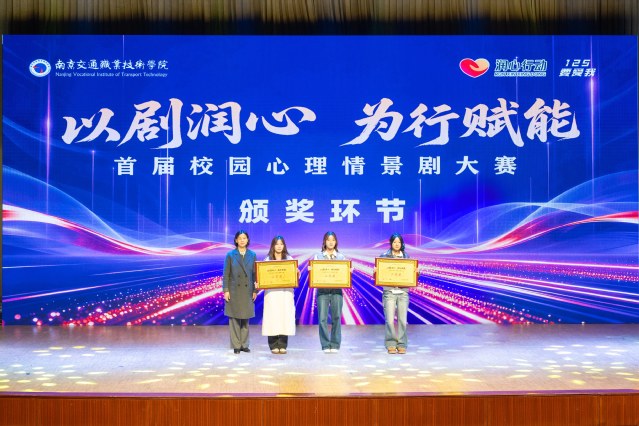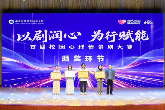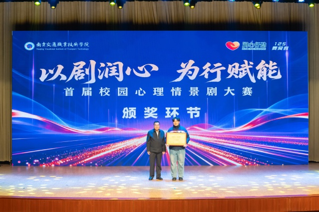 大賽在“成長”主題溫情視頻中拉開帷幕。各參賽劇目聚焦大學(xué)生在學(xué)業(yè)、人際、情感及未來規(guī)劃中的共性心理沖突,以藝術(shù)化形式精準(zhǔn)呈現(xiàn)?,F(xiàn)場氛圍熱烈,演員們憑借真摯情感與投入表演,生動展現(xiàn)了青年學(xué)子成長路上的掙扎、探索與蛻變。劇情兼具感染力與思辨性,不時引發(fā)觀眾共鳴,贏得陣陣掌聲。經(jīng)過兩小時激烈角逐,根據(jù)南京信息工程大學(xué)、河海大學(xué)、南京師范大學(xué)等六所高校心理領(lǐng)域?qū)<以u委的專業(yè)評審,大學(xué)生心理協(xié)會選送的原創(chuàng)劇目《來?!?,以貼近學(xué)子的主題與精湛演技獲得一等獎;軌道交通學(xué)院《我在這個世界流浪》、藝術(shù)設(shè)計學(xué)院《被比較困住的青春》、電子信息工程學(xué)院《走出宿舍的老六》榮獲二等獎;運輸管理學(xué)院《我的社交能量只有50%》、汽車工程學(xué)院《追光者》、建筑工程學(xué)院《綻放》、路橋與港航工程學(xué)院《以AI之名》榮獲三等獎。大賽同步評選出最佳劇本獎1名、最佳表演獎2名,與會領(lǐng)導(dǎo)為獲獎團隊及個人頒獎。