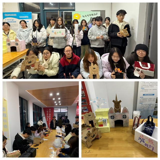 活動現(xiàn)場,同學(xué)們化身“宿舍舊物改造設(shè)計師”,將快遞紙箱、空塑料瓶等閑置物品作為創(chuàng)作原料,在剪刀、膠水等工具的輔助下,精心雕琢成收納盒、裝飾擺件等宿舍好物。創(chuàng)作過程中,大家相互協(xié)作、靈感碰撞,有的小組專注于收納功能的優(yōu)化,有的則側(cè)重美學(xué)設(shè)計的創(chuàng)新,現(xiàn)場洋溢著熱鬧又溫馨的創(chuàng)作氛圍。展示現(xiàn)場,一件件改造作品讓閑置煥發(fā)新生。