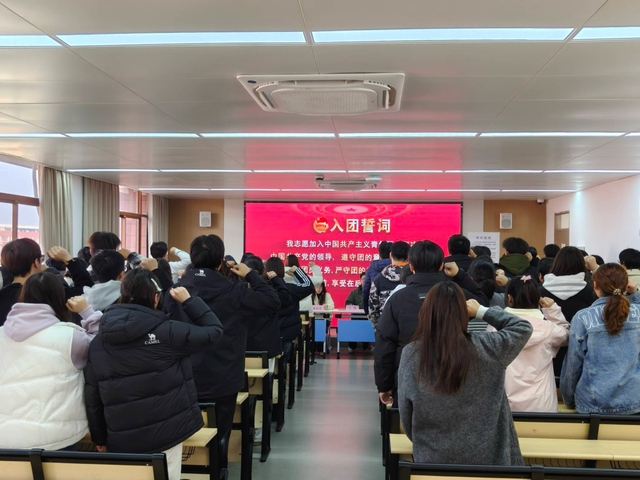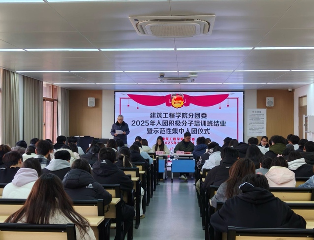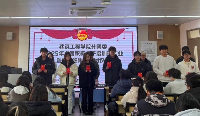 12月17日下午,建筑工程學(xué)院分團(tuán)委在廣宇樓502教室開展2025年入團(tuán)積極分子培訓(xùn)班結(jié)業(yè)暨示范性集中入團(tuán)儀式。學(xué)校關(guān)工委講師團(tuán)成員趙家華老師、建筑工程學(xué)院關(guān)工委常務(wù)副主任唐利國、分團(tuán)委書記王珣、學(xué)生黨員代表、學(xué)生會骨干及全體新發(fā)展團(tuán)員等100余人參加活動。儀式由王珣主持。