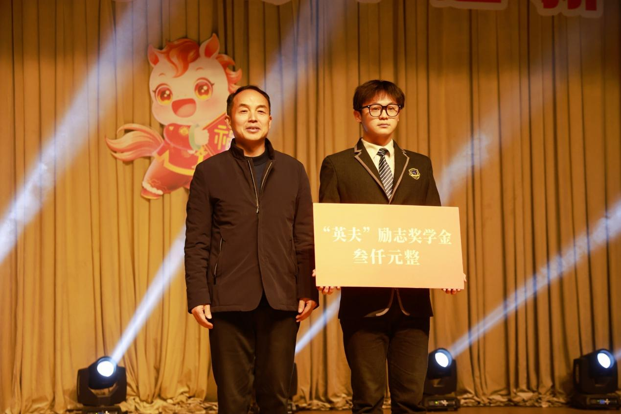 晚會中段,英夫勵(lì)志獎(jiǎng)學(xué)金頒獎(jiǎng)儀式如期舉行。運(yùn)輸管理學(xué)院史立峰書記為獲獎(jiǎng)學(xué)子頒獎(jiǎng)。設(shè)立此項(xiàng)獎(jiǎng)學(xué)金的退休老教師——?jiǎng)㈢蠋煱l(fā)來視頻祝福,寄語運(yùn)管學(xué)子學(xué)有所成、不負(fù)韶華,為國家建設(shè)貢獻(xiàn)青春力量。