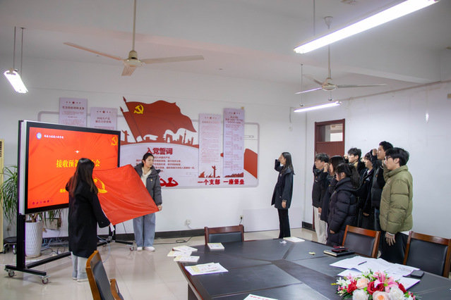 會(huì)議嚴(yán)格按照發(fā)展黨員程序進(jìn)行。11名發(fā)展對(duì)象依次匯報(bào)了對(duì)黨的認(rèn)識(shí)、入黨動(dòng)機(jī)及個(gè)人表現(xiàn),入黨介紹人分別介紹了培養(yǎng)考察情況,支部書記通報(bào)政審情況。經(jīng)支部大會(huì)充分討論和正式黨員無記名投票,一致同意接收11名同志為預(yù)備黨員。隨后,舉行莊嚴(yán)儀式,支部全體黨員教師為新黨員逐一佩戴黨員徽章,并贈(zèng)送《與青年共讀〈共產(chǎn)黨宣言〉》一書。支部組織委員顧云老師帶領(lǐng)全體新黨員面向黨旗進(jìn)行了入黨宣誓。