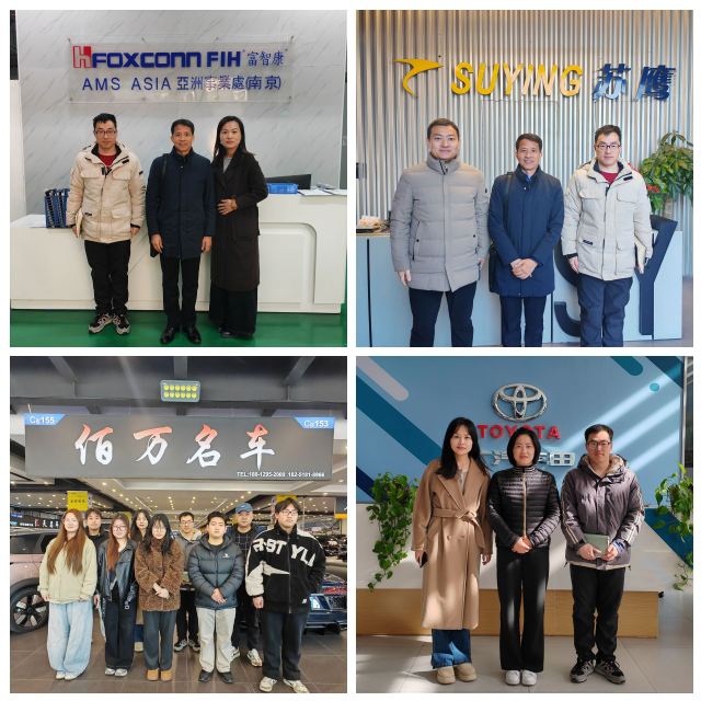 1月7日至1月14日,汽車工程學(xué)院黨總支書記劉陽(yáng)、專任教師劉凱迪、輔導(dǎo)員朱吉順一行赴南京市多家企業(yè)開展訪企拓崗專項(xiàng)活動(dòng),先后走訪了富智康(南京)通訊有限公司、蘇鷹科技集團(tuán)有限公司、泛華保險(xiǎn)公估股份有限公司江蘇分公司、鑫車投資(上海)有限公司南京事業(yè)部、南京協(xié)眾友旭汽車有限公司等企業(yè)。