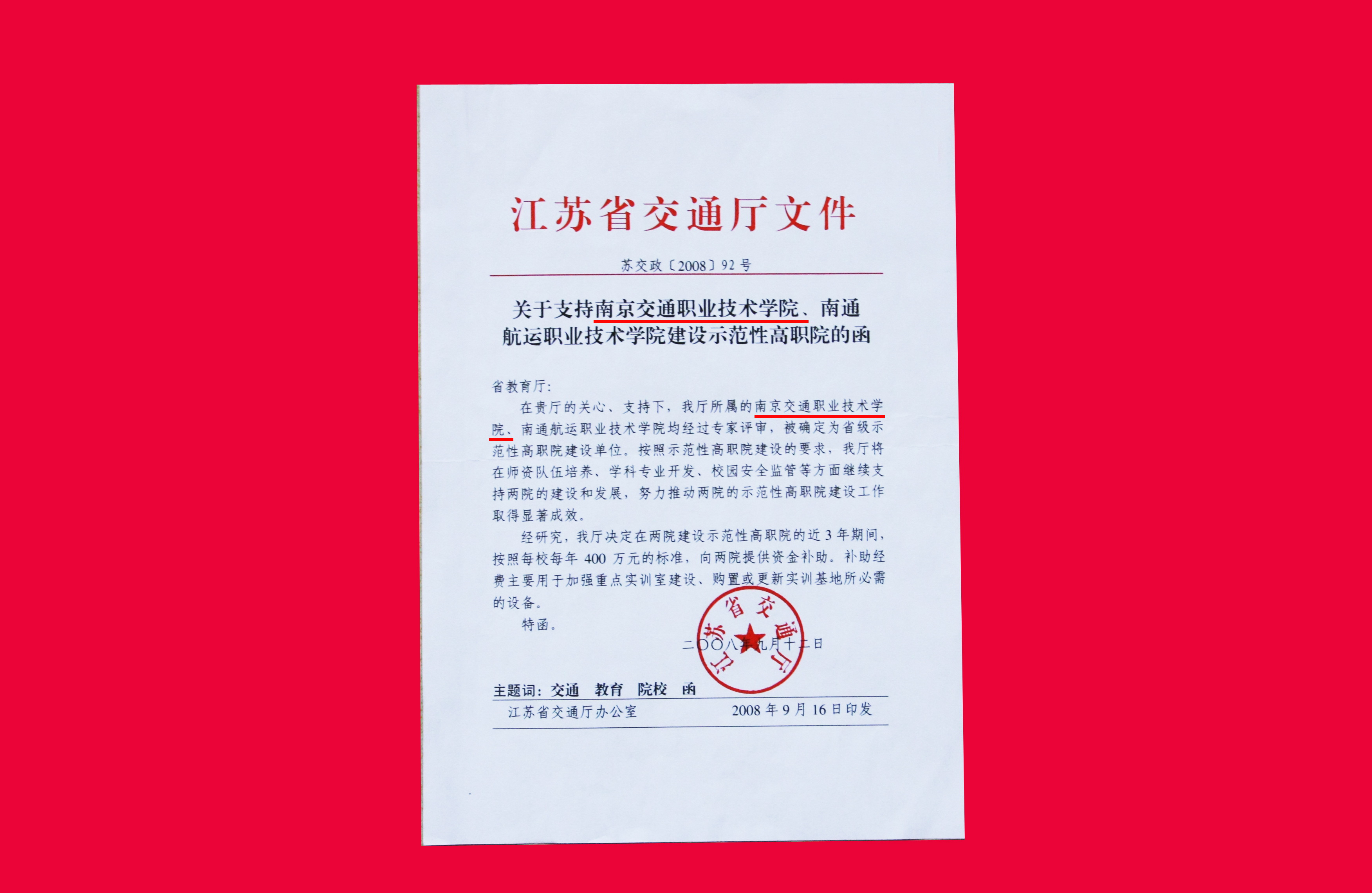 省交通廳支持學(xué)院建設(shè)示范院校的文件