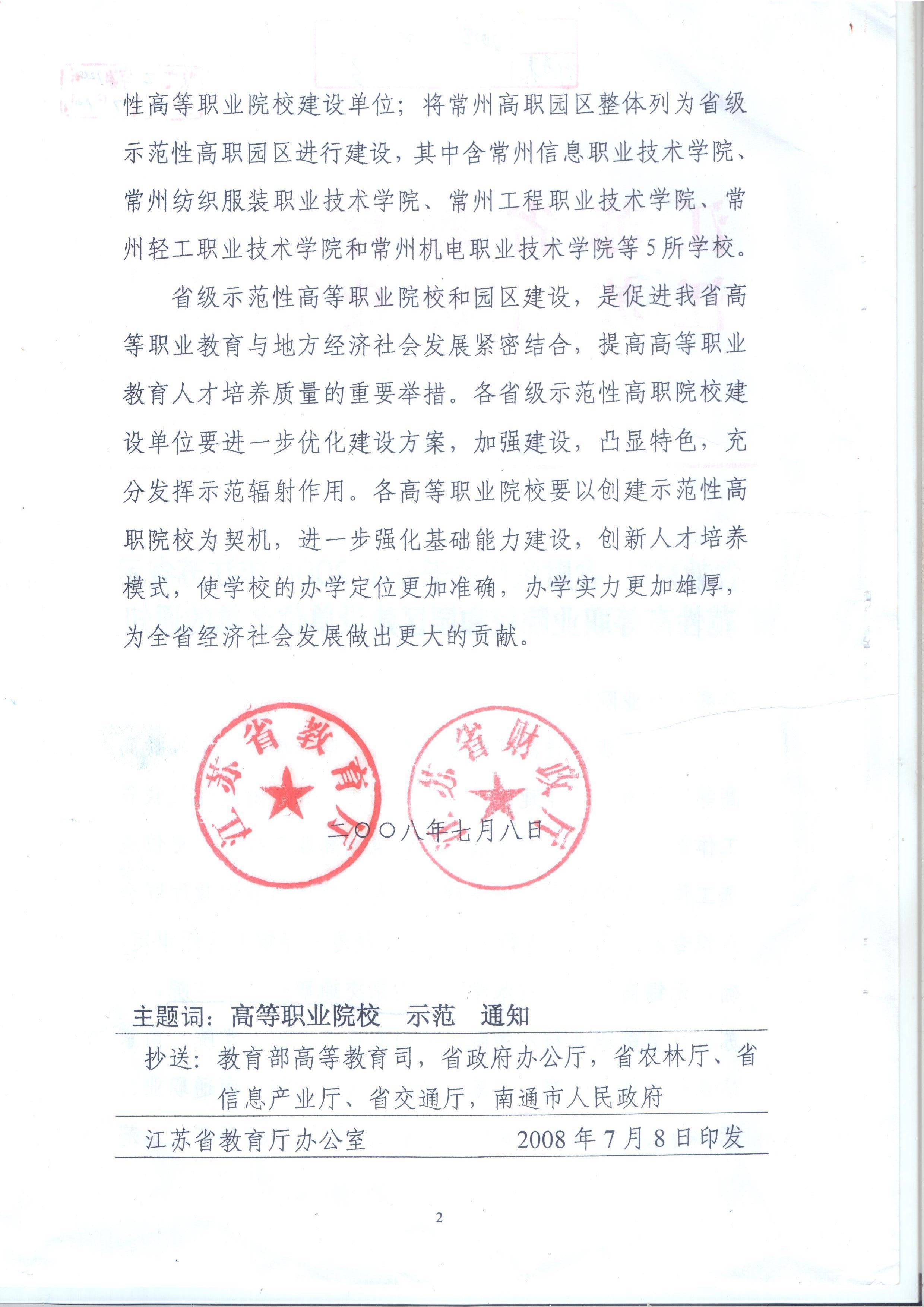 進(jìn)入“十五”時期,學(xué)院轉(zhuǎn)入內(nèi)涵質(zhì)量建設(shè),不斷深化人才培養(yǎng)模式改革,教育教學(xué)和科學(xué)研究取得豐碩成果。2008年7月,學(xué)院被江蘇省教育廳、財政廳確定為“江蘇省示范性高等職業(yè)院校建設(shè)單位”(蘇教高〔2008〕31號)。