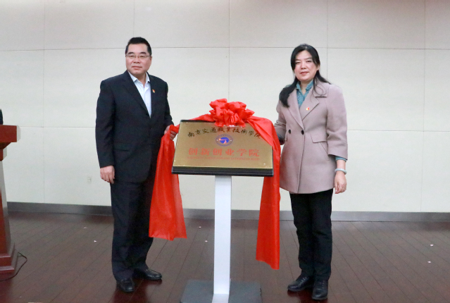 賈書記和張?jiān)洪L共同為創(chuàng)新創(chuàng)業(yè)學(xué)院揭牌,并為現(xiàn)場(chǎng)創(chuàng)業(yè)精英們頒發(fā)了導(dǎo)師聘書。黨委副書記周傳林、紀(jì)委書記崔建寧為2019年各類大學(xué)生創(chuàng)新創(chuàng)業(yè)大賽獲獎(jiǎng)團(tuán)隊(duì)頒發(fā)了榮譽(yù)證書。中國“雙創(chuàng)”先鋒人物、南京行知學(xué)校校長王維博士作為導(dǎo)師代表進(jìn)行了發(fā)言,獲獎(jiǎng)團(tuán)隊(duì)代表、軌道171班姜華同學(xué)分享了互聯(lián)網(wǎng)+大學(xué)生創(chuàng)新創(chuàng)業(yè)大賽參賽經(jīng)歷。