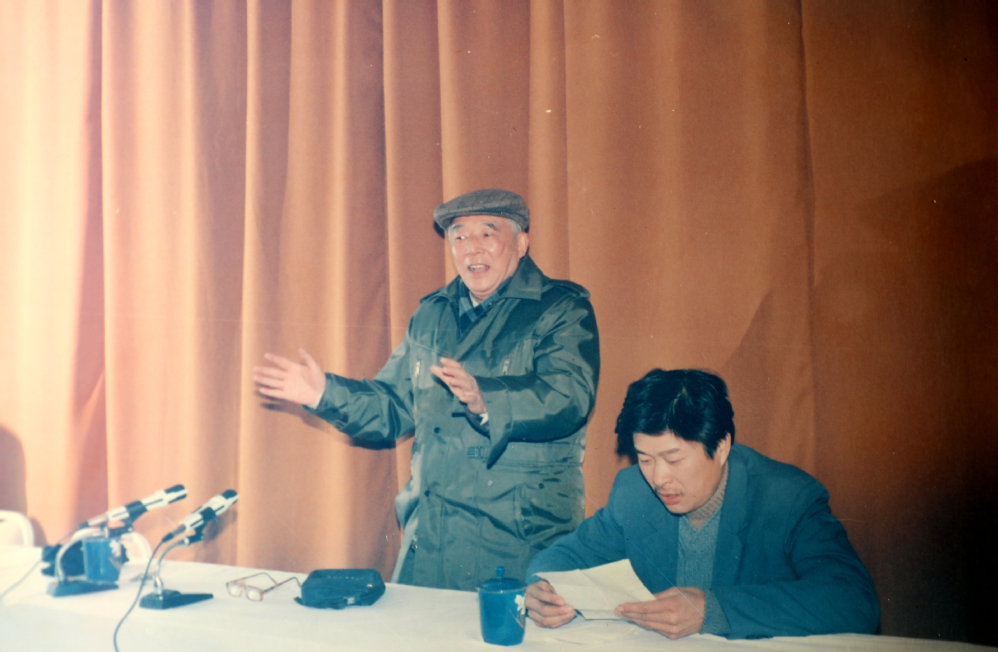 隨后,沈老開始教唱校歌。他站在主席臺(tái)上,有力揮動(dòng)雙臂,親自指揮師生們齊聲大合唱,由我手風(fēng)琴伴奏。他不厭其煩,一遍遍教唱,直到師生們能準(zhǔn)確合唱。一下午的時(shí)間在不知不覺中過去,臨分別時(shí),全體師生意猶未盡,掌聲經(jīng)久不息,一直護(hù)送沈老到樓下,大家依依不舍, 目送沈老離開……