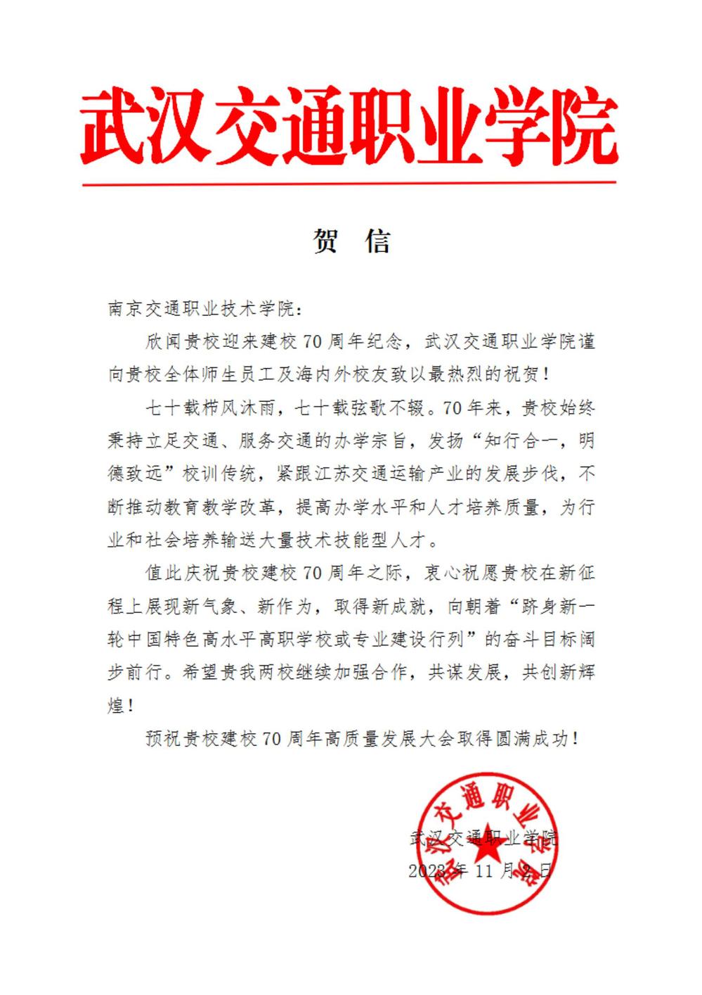武漢交通職業(yè)學(xué)院賀信