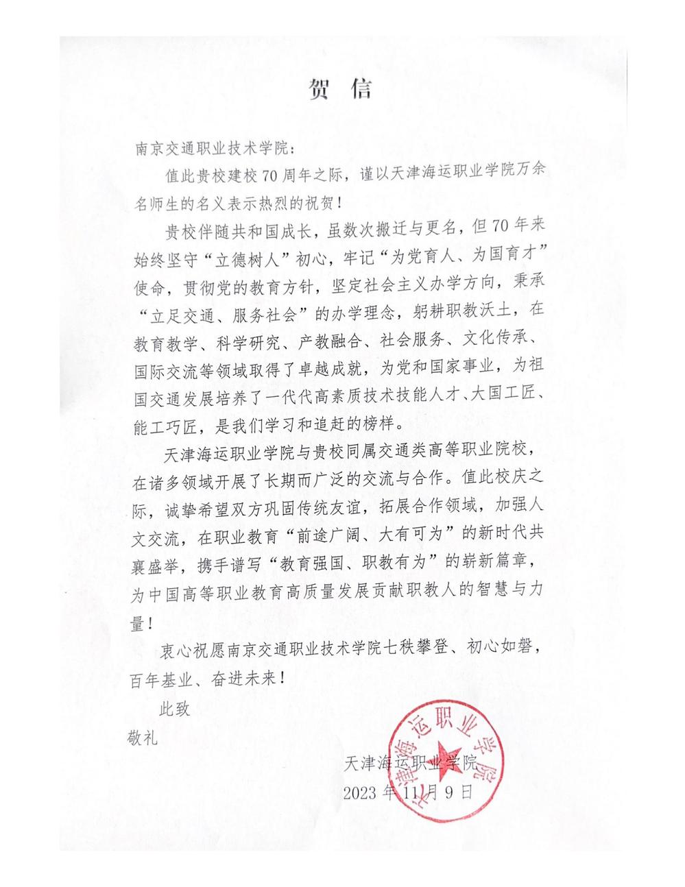 天津海運(yùn)職業(yè)學(xué)院賀信
