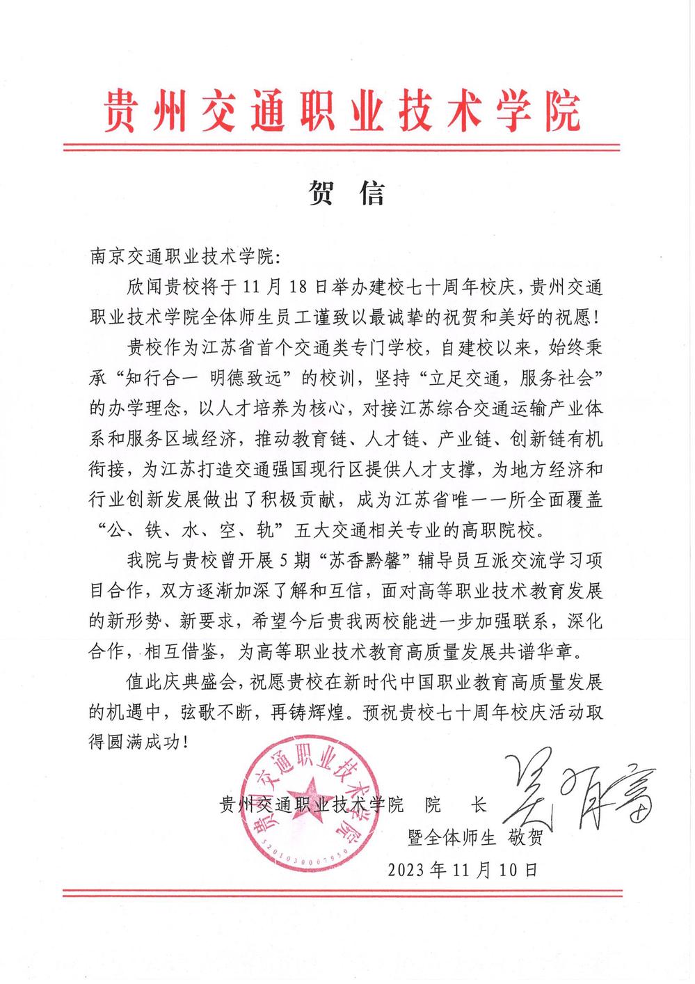 貴州交通職業(yè)技術(shù)學(xué)院賀信
