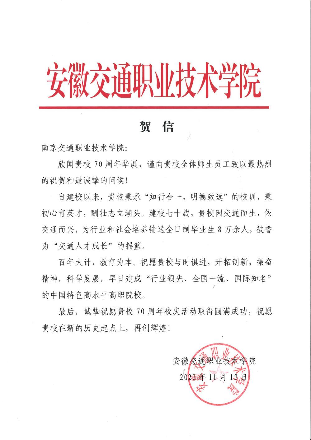 安徽交通職業(yè)技術學院賀信