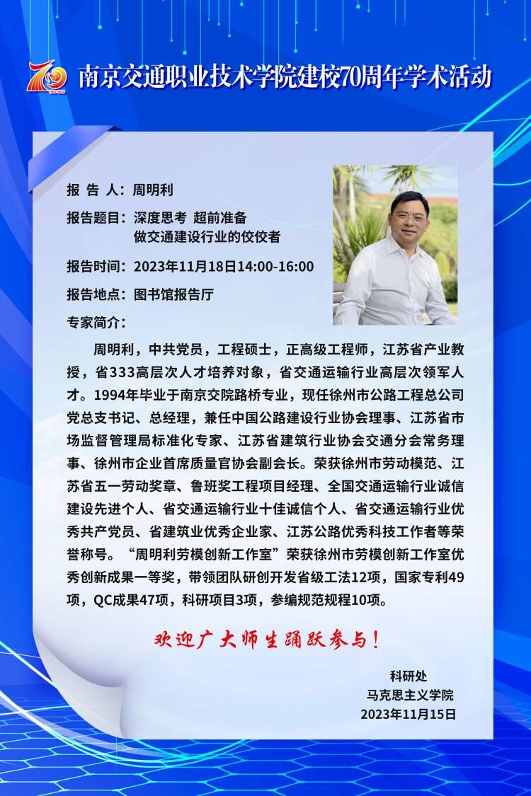 學(xué)院建校70周年學(xué)術(shù)活動預(yù)告(三)