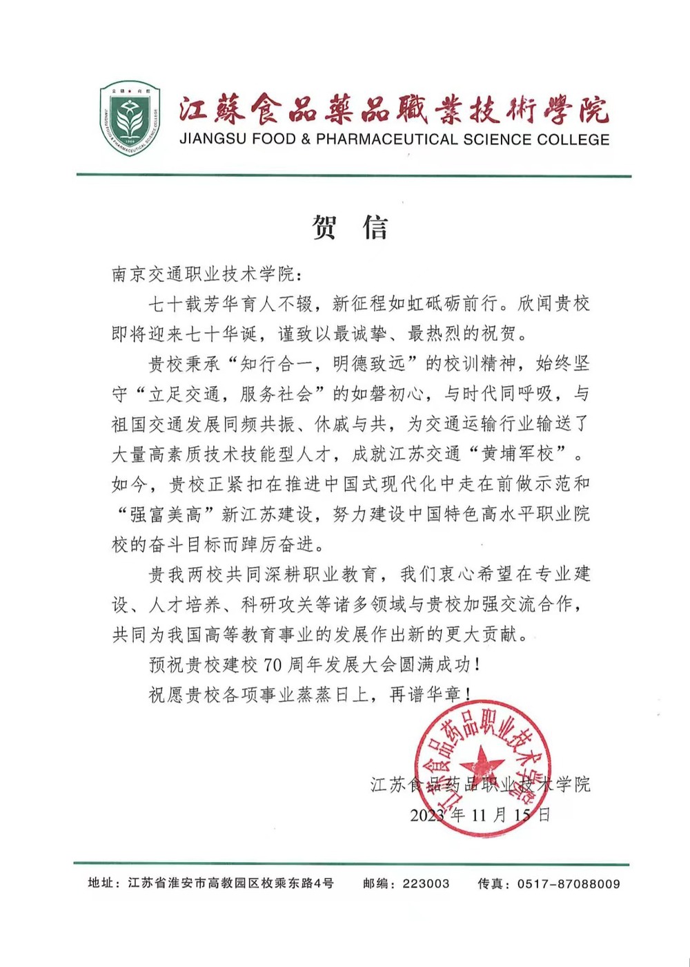 江蘇食品藥品職業(yè)技術(shù)學(xué)院賀信