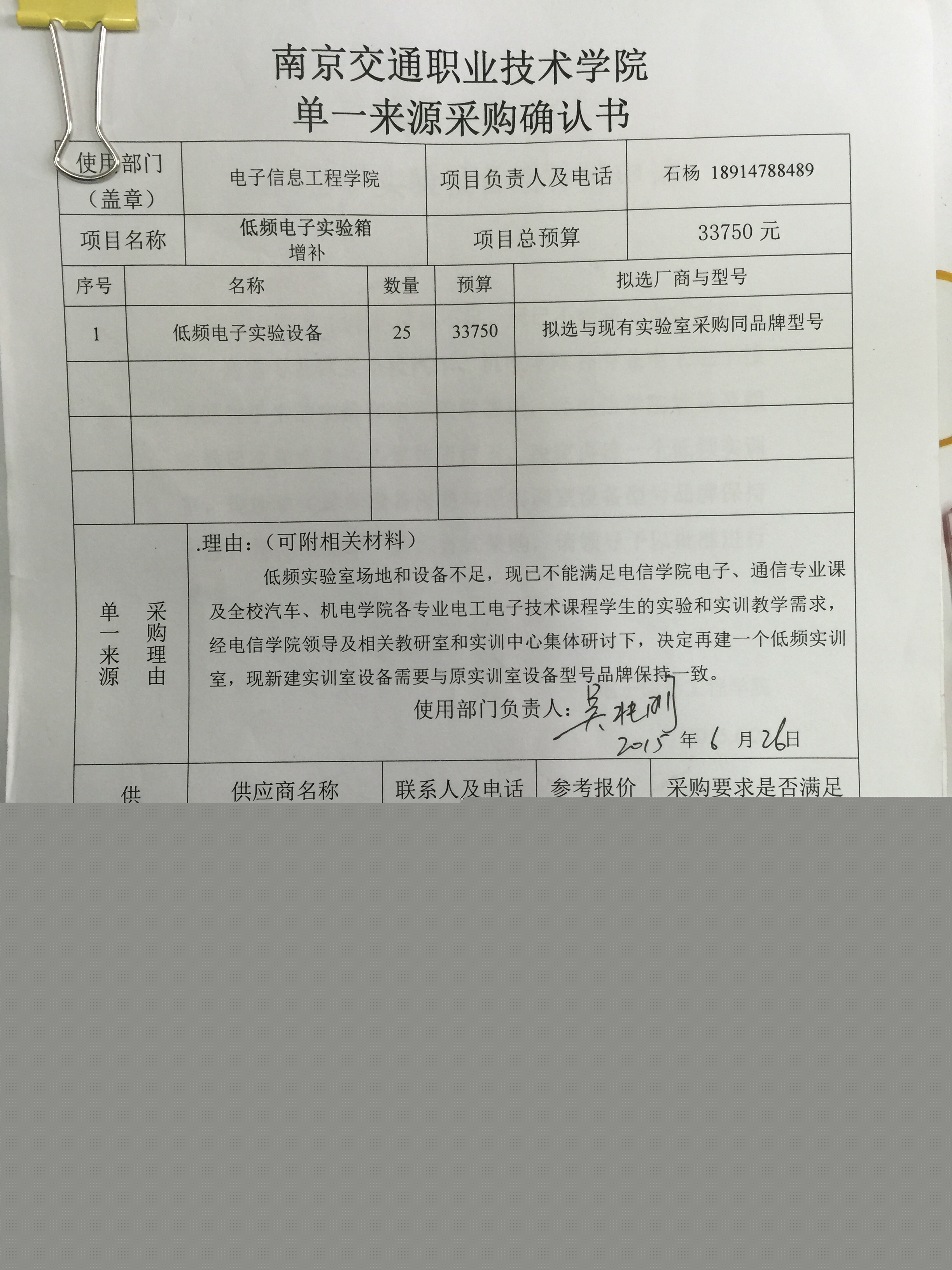 我部門受電子信息工程學(xué)院的委托,擬對(duì)該部門委托的采購(gòu)編號(hào)為JY2015098號(hào)低頻電子實(shí)驗(yàn)箱增補(bǔ)項(xiàng)目實(shí)施院級(jí)采購(gòu)。本部門根據(jù)采購(gòu)人的實(shí)際申報(bào)情況,擬對(duì)該項(xiàng)目采用單一來(lái)源采購(gòu)方式。