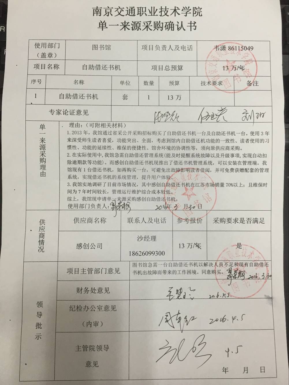 我部門受圖書館的委托,擬對該部門委托的采購編號為JY2016023號自助借還書機設備項目實施單一來源采購。