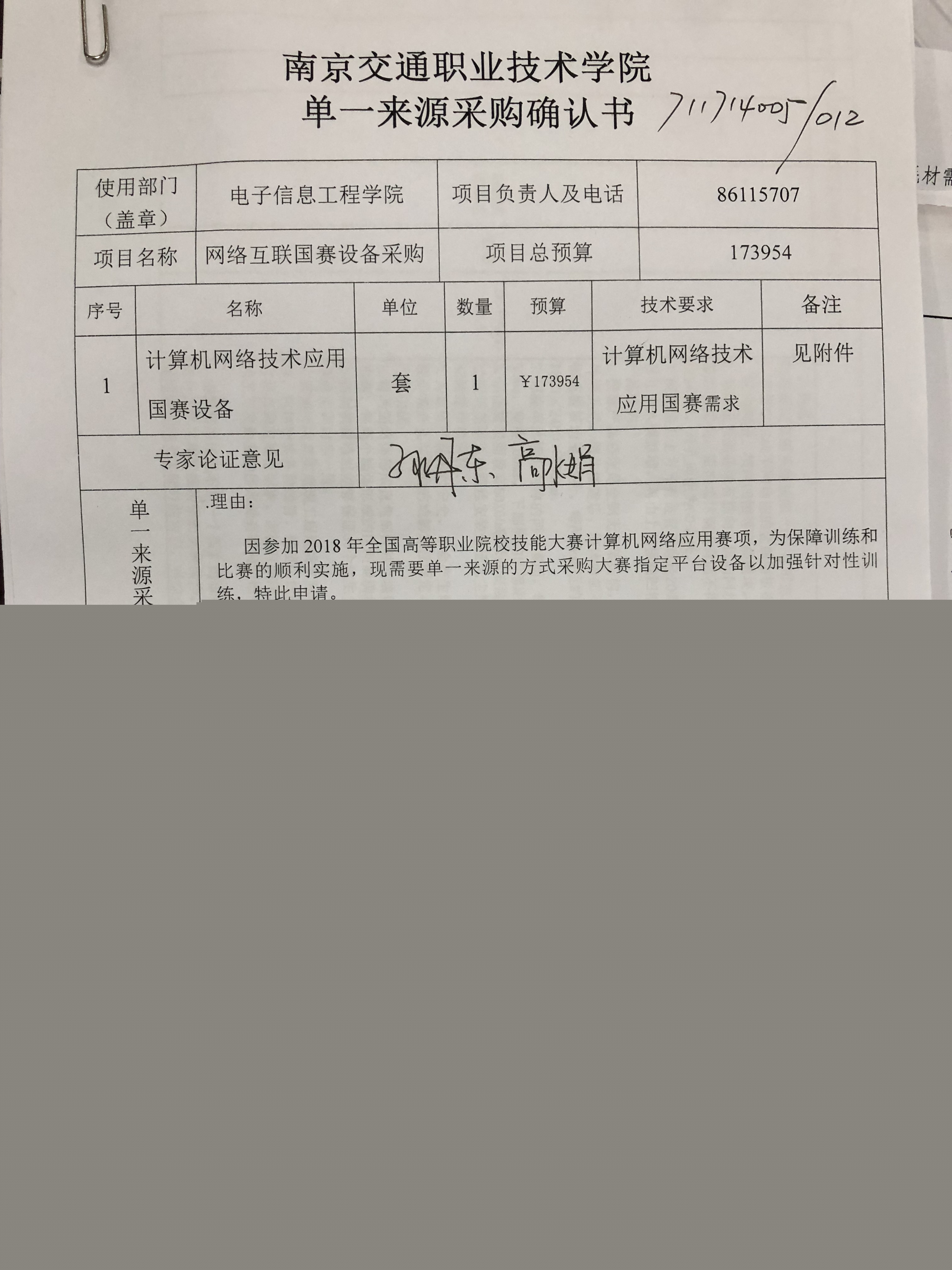 受學(xué)院電子信息工程學(xué)院委托,學(xué)院物資采購管理辦公室對網(wǎng)絡(luò)互聯(lián)國賽設(shè)備(綜合布線類)采購項目進行單一來源采購?,F(xiàn)將采購人的單一來源申請材料進行網(wǎng)上公示(具體材料見上傳附件),如有異議者,可以在公示期內(nèi),攜書面材料(加蓋公章)與我部門聯(lián)系,逾期將不再受理。