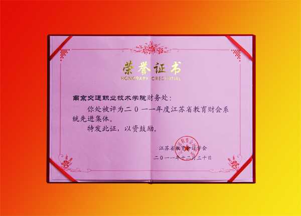 近日,在江蘇省教育財(cái)會(huì)系統(tǒng)先進(jìn)集體評(píng)選中,學(xué)院財(cái)務(wù)處榮獲“二○一一年度江蘇省教育財(cái)會(huì)系統(tǒng)先進(jìn)集體”。