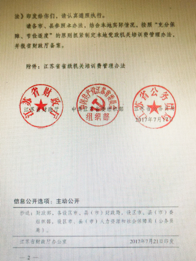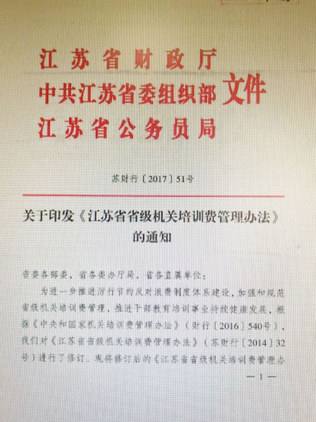 江蘇省省級(jí)機(jī)關(guān)培訓(xùn)費(fèi)管理辦法(蘇財(cái)行(2017)51號(hào))