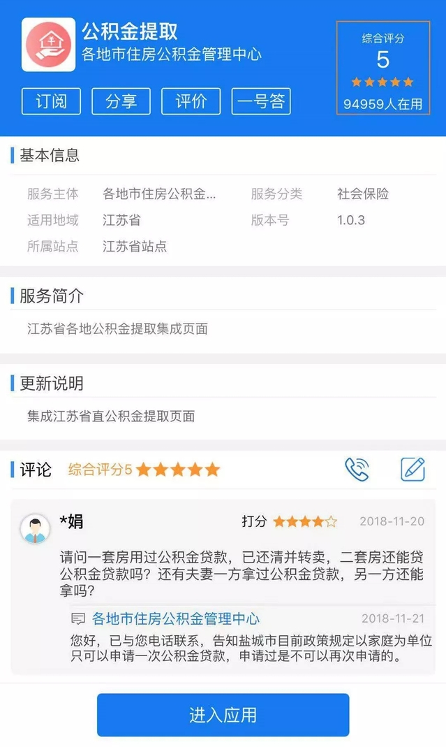 沒錯,這就是江蘇政務(wù)服務(wù)網(wǎng)在全國率先開通的政務(wù)服務(wù)全過程評價功能,實時檢驗11萬個網(wǎng)上可辦事項及移動端高頻熱門應(yīng)用的服務(wù)效能。群眾上江蘇政務(wù)服務(wù)網(wǎng)辦事可以像逛淘寶一樣,可以評價也可以吐槽。評價中的問題和需求,以一號答工單進行流轉(zhuǎn)辦理。評價功能正式上線四個月來,服務(wù)評價已達8536件,評選出四星級、五星級服務(wù)共計275個。通過全過程服務(wù)評價,實現(xiàn)了政務(wù)服務(wù)全生命周期管理,推動部門服務(wù)不斷迭代完善。公積金提取功能上線以來,方便了用戶,一直是備受關(guān)注的五星級應(yīng)用。