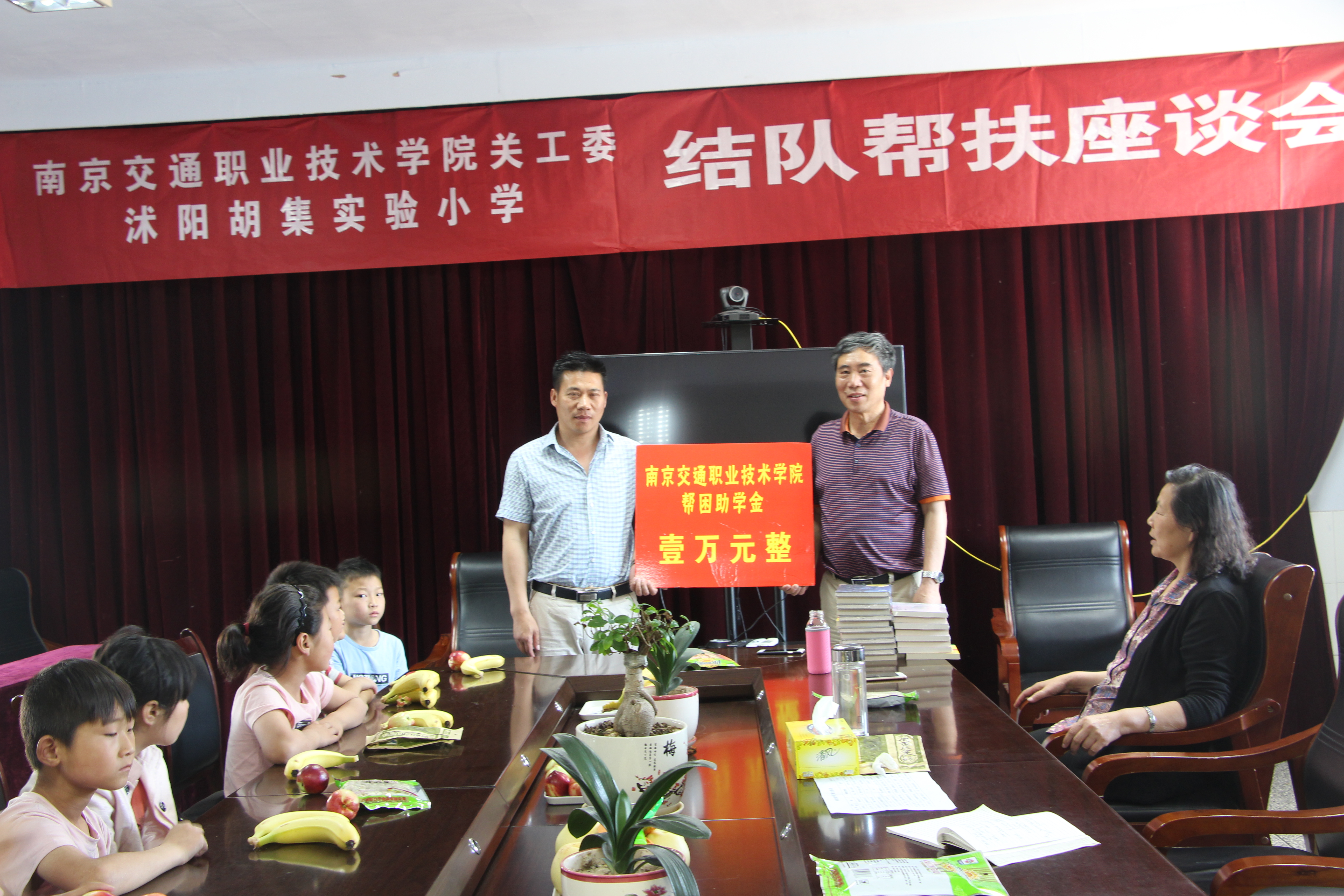 胡集中心小學(xué)顧主任介紹了結(jié)隊幫扶對象的家庭、學(xué)習(xí)和生活情況。關(guān)工委胡維忠副主任轉(zhuǎn)達了學(xué)校領(lǐng)導(dǎo)對胡集中心小學(xué)孩子們的關(guān)心和支持,闡述了結(jié)隊幫扶活動的意義,并代表學(xué)校關(guān)工委向孩子們捐贈一萬元幫困助學(xué)金。關(guān)工委老同志與孩子們進行了座談,并為每個孩子贈送兩本課外讀物,鼓勵他們讀好書,學(xué)做人。