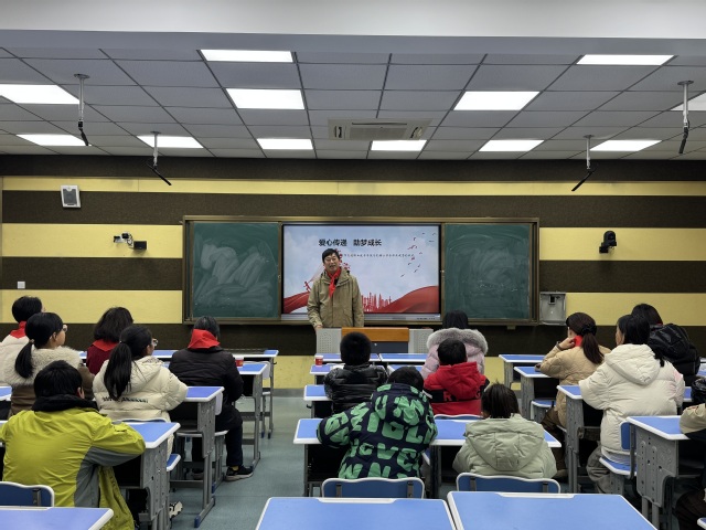 孔鎮(zhèn)小學大隊輔導員介紹了學校的歷史、辦學特色,并帶領學生代表為我院教師佩戴紅領巾。