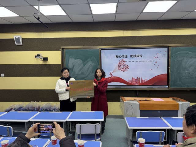 在熱烈的掌聲中,張毓秋副處長與孔鎮(zhèn)小學校長丁小花共同為基地授牌;楊金剛書記與丁小花校長簽署了共建協(xié)議;電信學院關工委常務副主任趙家華代表學院將書包等文具用品捐贈給小學生。