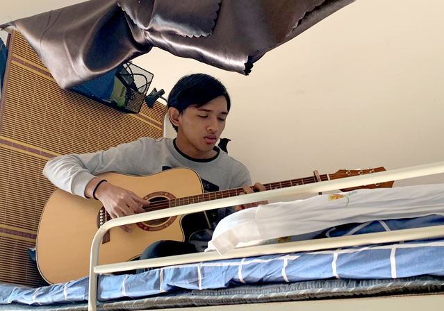 留學(xué)生們用彈琴、唱歌等文體活動充實(shí)宿舍生活。隨著疫情的緩解,近期管理人員還將有序組織他們到校內(nèi)操場開展體育鍛煉,增強(qiáng)體質(zhì)提高抵抗力。