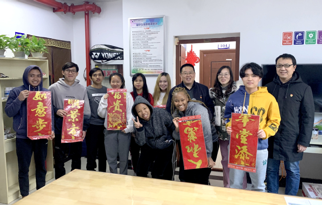 周傳林副書記一行代表學院向外教和留學生們致以新春祝福,送上新春對聯(lián)和慰問禮品,仔細詢問了他們的學習和生活情況,叮囑大家按照疫情防控相關(guān)要求和建議做好科學防護措施,過一個安全、健康、有益的假期。