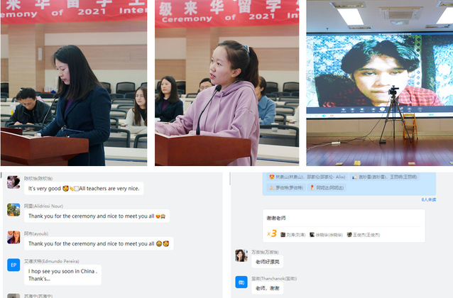 活動(dòng)在歡樂(lè)的隔屏留影中落下帷幕?;顒?dòng)結(jié)束后,留學(xué)生們熱情不減,紛紛開(kāi)啟了刷屏贊揚(yáng)模式,感謝學(xué)校和老師們的寄語(yǔ),表示對(duì)來(lái)華的學(xué)習(xí)生活充滿信心。