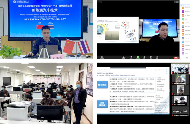 南京交通職業(yè)技術(shù)學(xué)院汽車工程學(xué)院教研室主任劉奕貫是此次培訓(xùn)老師,他為泰國(guó)師生們作了《中國(guó)新能源汽車行業(yè)發(fā)展與職教探索》專題分享,系統(tǒng)分析了中國(guó)新能源汽車產(chǎn)業(yè)現(xiàn)狀、核心技術(shù)狀況、新能源汽車技術(shù)發(fā)展趨勢(shì)、行業(yè)崗位需求以及南京交通職業(yè)技術(shù)學(xué)院新能源汽車技術(shù)專業(yè)建設(shè)的探索。專題分享內(nèi)容聲畫(huà)結(jié)合、生動(dòng)充實(shí),受到了學(xué)員們的一致好評(píng)。培訓(xùn)會(huì)上,泰國(guó)師生們和劉奕貫老師開(kāi)展了深入互動(dòng)和交流,就新能源汽車的技術(shù)運(yùn)用、學(xué)院新能源汽車建設(shè)成果、畢業(yè)生培養(yǎng)方向等問(wèn)題進(jìn)行了研討。