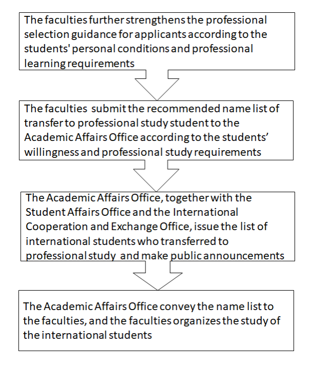 1. International students who intend to transfer to professional study must study Chinese for more than 1 academic year (inclusive) in the full-time organized class system in our school.